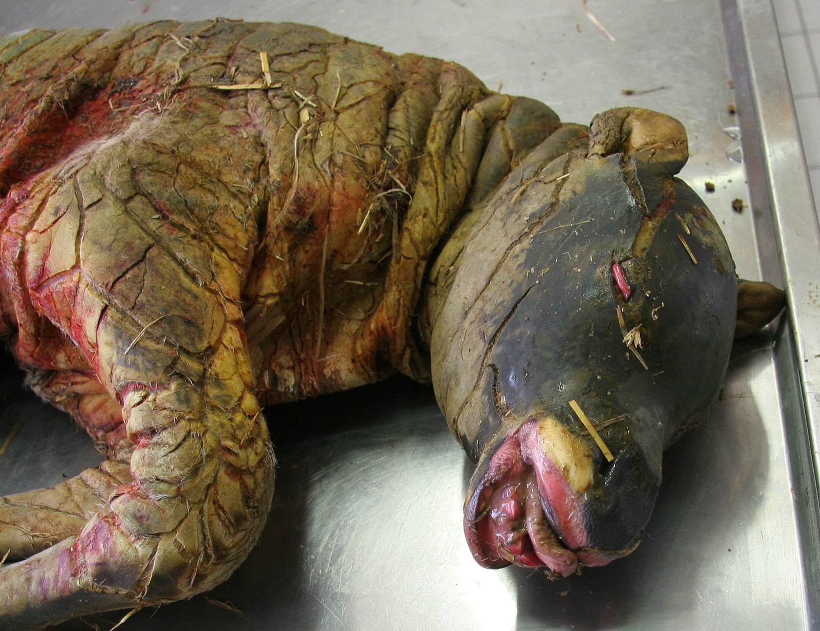 Ittiosi fetale, sono evidenti le placche cornee divise da profondi solchi somiglianti ad una corazza di cuoio.