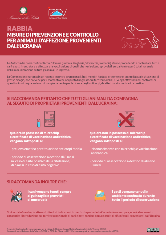 In Italia il Centro di Referenza nazionale per la rabbia è stato istituito presso l’Istituto Zooprofilattico Sperimentale delle Venezie, con il decreto 8 maggio 2002 del Ministero della Salute. L’IZSVe si è occupato della problematica della rabbia dal 1977, da quando è stato attivato il programma di sorveglianza per la rabbia silvestre dell’OMS.