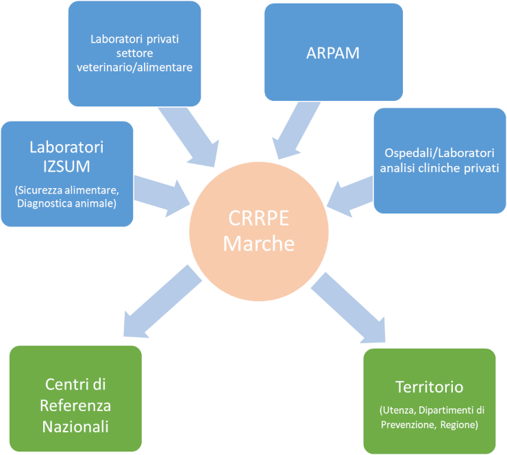 Con nota del 12 settembre 2001, su richiesta dell’Istituto Superiore di Sanità che chiedeva di indicare un laboratorio di riferimento regionale per la rete di sorveglianza Enter-Net, l’Assessorato Regionale alla Sanità delle Marche ha affidato tali funzioni all’Istituto Zooprofilattico Sperimentale dell’Umbria e delle Marche che ha collocato formalmente il Centro di Riferimento Regionale per i Patogeni Enterici (CRRPE) per la regione Marche, presso i laboratori della Sezione Territoriale della Provincia di Macerata, attualmente operanti presso la sede di Tolentino.