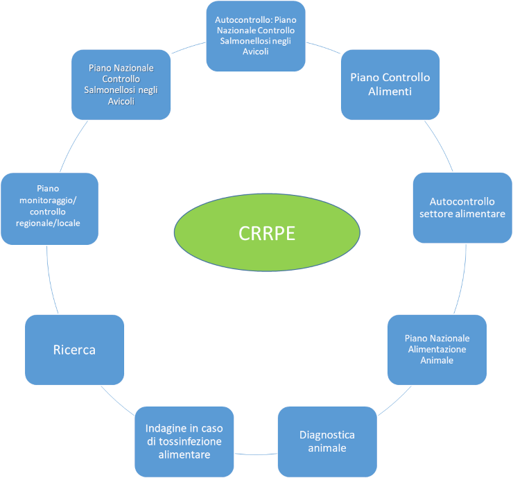 - Laboratori Regionali di Riferimento (come il CRRPE): provvedono alla ricezione da parte dei Laboratori periferici dei ceppi isolati e delle informazioni epidemiologiche a essi relative ed eseguono ulteriori analisi (es. tipizzazione sierologica e molecolare). Alimentano i database nazionali coordinati dai rispettivi Centri di Referenza e inviano a essi gli isolati batterici
